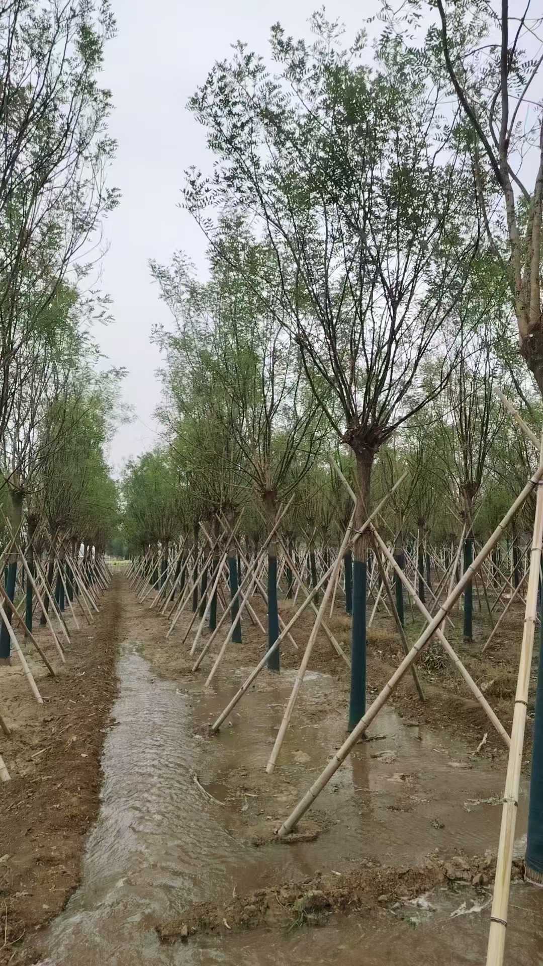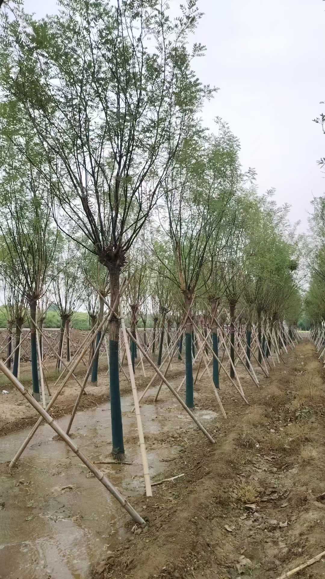 假植國槐的核心價值就在于顯著提高移栽成活率和效果,移栽時間寬泛,移栽成活率高,成景時間短,是目前大規格綠化苗木比較常用的育苗方式。